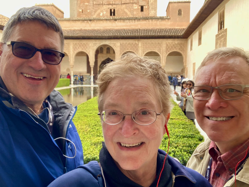 At 4:30 PM, we all piled onto the bus for a narrated ride through Granada. This culminated in a photo op stop high up in the old town that afforded us panoramic views of the Alhambra from afar and the Granada plateau below.