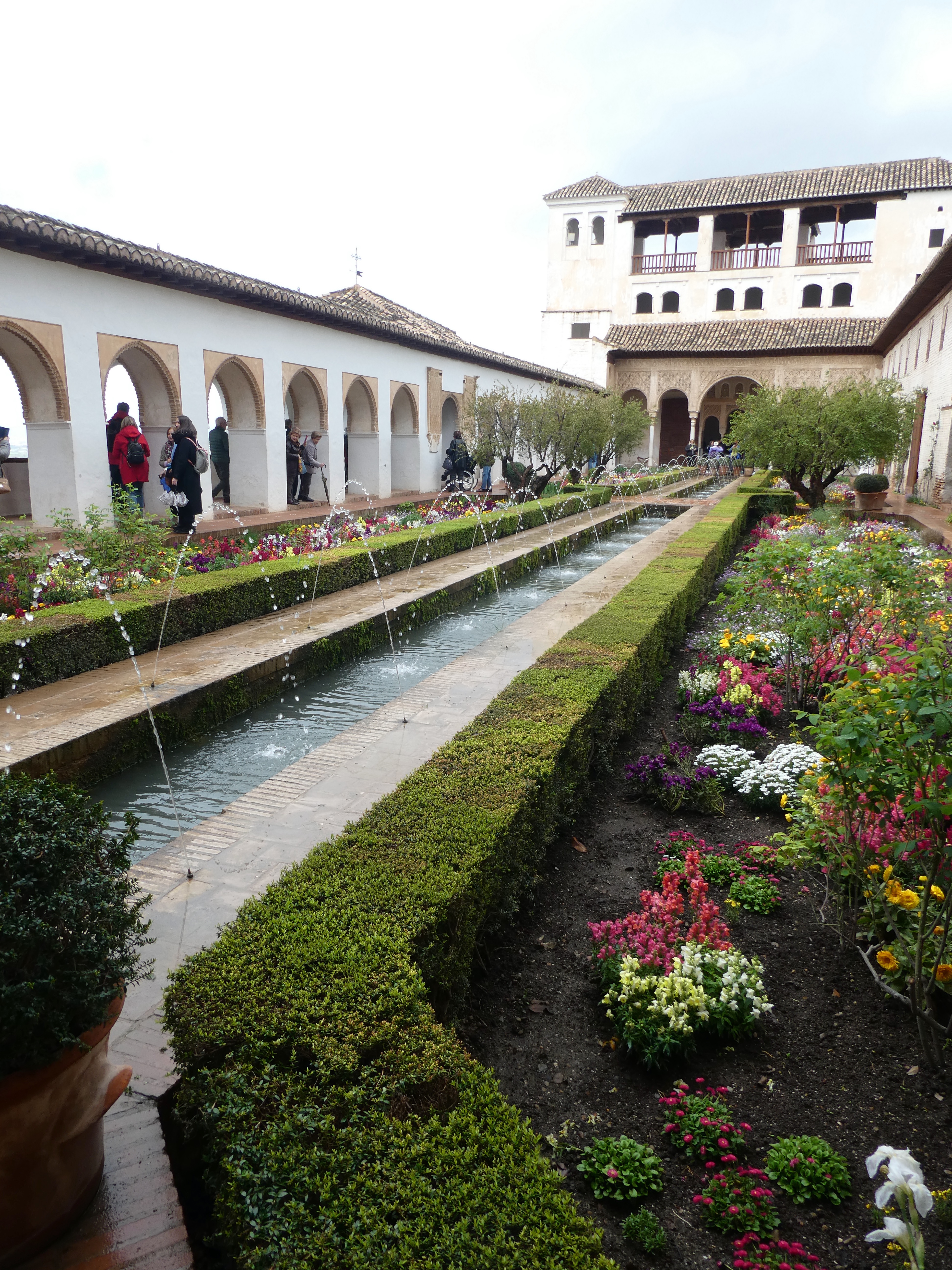 The finale of the tour was through an area of modern formal gardens added to the complex much later. A defining sign of its non-Moorish design is that the water features here are noisy: arches of water splash loudly into pools versus the silent bubbling up and flowing of nearly every fountain of Moorish design. With a nod to its original use, one area has been planted with agricultural plants, replicating the food gardens of old.